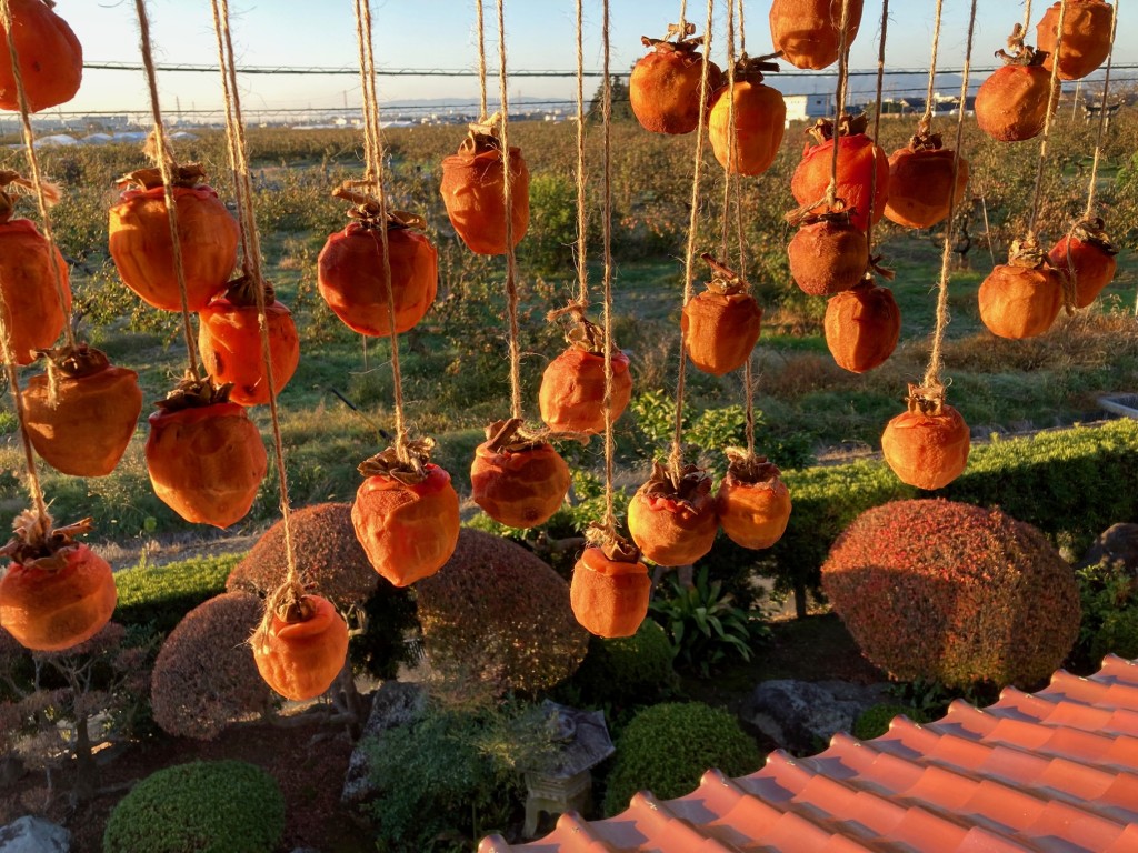渋柿フジなどを収穫し実家の軒先に吊しました。