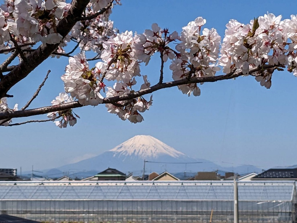 小出川と桜と富士山