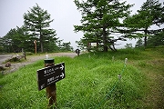 高峰温泉を過ぎ、ダート林道を4kmほど進み池の平湿原駐車場。気温は19度になりました。ここから散策路を巡ります。 |