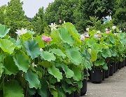 大船フラワ-センタ-には、約260品種、300鉢の蓮が栽培されています。 6月下旬から7月中旬の開花の時期には、1日に約150本の花が咲き見頃の期間は早朝開園されていました。