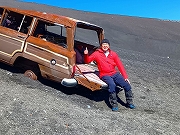 標高2050m辺りに放置されておよそ40年、車種はアメリカのクライスラー社製Jeepのグランドワゴニア。四駆をもって富士山山頂を目指すもここで走行不能になり、放置されてしまった。その時代は車両での富士山走行は出来たようで、車両の走行性能テストも行われたようである。