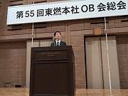 続いて、来賓のENEOS株式会社 常務執行役員(9ヵ所の製油所及び2か所(含む和歌山)の製造所を統括)の寺本光司様から、23年から始まった第3次中計は経営・資本効率は引き続き注力していく必要があるが、当期利益・フリーキャッシュフローは24年に当初目標を達成した。また3つの柱である1.確かな収益の礎の確立では製油所の稼働率が上がってきているともにAIを使った装置の運転に取り組んでおり、2.エネルギートランジションの実現については、昨年SAFを日本で初めて輸入したとともに和歌山での生産設備導入を検討中/研究所で合成燃料生産の実証運転を行っている、3.経営基盤の強化はENEOSホールディングとENEOSの役割を明確化し、ホールディングは東燃出身の宮田知秀様が代表取締役社長執行役員に就任している との紹介がありました。