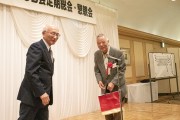 松下副会長から前総会以降の経過報告と、新入会員紹介を含む会員動静の報告を行いました。谷幹事(会計)から収支繰越金報告と星野監事から会計監査報告が行われ、満場一致で承認されました。会社経営統合に伴う賛助金の減額他に対応した全東燃OB会の会則変更及び他事業所OB会会則との共通性・整合性を図った会則改訂案を満場一致で承認いただきました。役員改選では、谷幹事(会計)と星野幹事(監査)の退任と大塚幹事の新任、残り5名の留任が満場一致で承認され、礒田会長より全役員の担当任務を伝達し、無事に総会を終了しました。引き続き「長寿のお祝い」では、喜寿の天辰敏彦氏に「記念品」を贈呈し、出席者全員でお祝いいたしました。