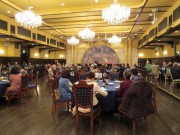 そして宴会は、米寿を迎えられ益々お元気な斉藤勇二様の乾杯の発声で賑やかに始まりました。お互いに健康を気遣いながらも最近の生活、趣味、健康作り、孫自慢など話題は尽きずあちこちに賑やかな人の輪、笑いの渦、さらに和服姿の女性も加わって会場は華やいだ雰囲気で大いに盛り上がりました。“笑い”の中でフリードリンクの飲み物に、会場エリザベート自慢のコース料理を堪能しているうち、予定した2時間はあっという間に過ぎ、最後は佐野会長の3本締めで威勢よく締め、お互いに来年もまた元気で再会することを誓い午後3時30分散会となりました。