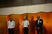 中締めとして、本日出席者の中で一番若い今井さんが壇上に立ち「一本締め」を行い閉会になりました。来年度のKSSOB会総会・懇親会は、同じ会場で9月27日(金)に開催する予定です。皆様ぜひご出席ください。