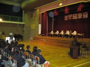 内容は、小学校の生徒が知っていると思われるような曲(わらべ唄、夕やけこやけ変奏曲、みちのくの旅)を選曲しました。