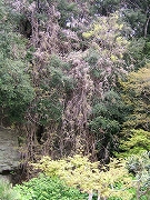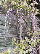 借景の山は昔(和歌山市内は海だった頃、和歌の浦から連なる島の北端で古文書の「紀州名所図会 」の「丈六岩」が控え、それに藤の弦が50年伸び今花が咲き始めています。