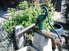 特に、雨水の活用には拘っている。まず、近頃珍しい「手押しポンプ」を設置、これは地形的に恵まれており、地下水位が1mくらいだから、小型ユンボで掘り起こし、半日で完成した。