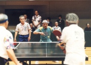 昭和22年春、旧制中学5年生の時に卓球をやり始め、10数年続けた後中断、昭和58年秋から毎年、全国旧制高校OB卓球大会が開催される事になり、この大会に参加する為練習を再開しました。幸い居住地区の近くに卓球クラブが在り、このクラブに加入し練習を続けて22年になります。他に2,3の練習グループにも加わり、平均週2〜3回、1回1時間半〜3時間の練習です。私の卓球はかなり動き回るやり方で、汗びっしょりとなります。それに早く動くボールを目で追う事が動体視力を鍛え、脳に刺激を与え、老化防止に繋がっているようです。