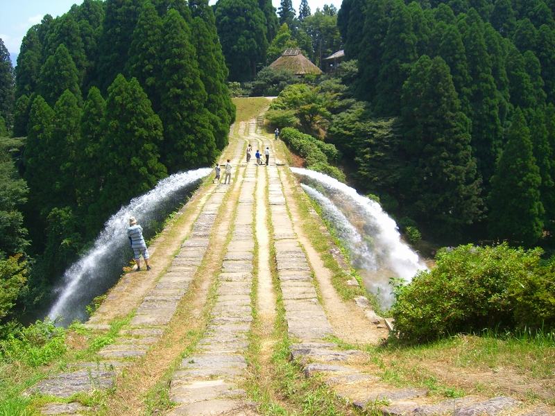 通潤橋(2) 上部、3本の石管(右、上流側)