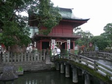 案内された神社入口の鳥居、石橋、楼門はいずれも国重要文化財に指定されており、境内には樹齢1400年を超える大楠など5本の楠が天に向かって枝葉を広げている。広い境内の清掃、社の維持管理だけでも大変そうだ。
