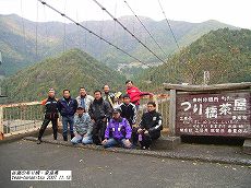 10時半、谷瀬の吊り橋へ到着。全長約300m、高さは50mあまりで、歩道専用のつり橋としては日本一と言われる。おそるおそる対岸まで渡る。