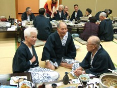 大磯からの東倉夫妻はマイカーで朝出発、15時着のハードな行程に恐縮し、なかには50年ぶりの再会の女性もおられて昔話に花が咲き、この1年で亡くなった3名の会員を偲んで、夜遅くまで宴に歌にと過ごしました。