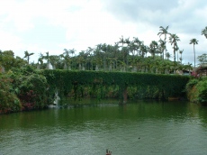 ◎ウォターガーデン ポリネシアンレイクなどの三つの池を中心にした植物園。池には噴水が設けられ、その畔にガジュマル広場・ハイビスカスエリア・タコノキ並木等があり、レイクに咲く赤・白・黄色の熱帯睡蓮も素晴らしい。別の池には、沢山の鯉(約2万匹いるそうな 開園当時は10センチくらいの鯉が20〜30匹くらいいたように記憶している)がエサに群がる様は本当に気持ちが悪い。