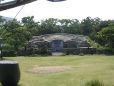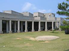 佐喜眞美術館は、普天間基地を見下ろす丘に建つ県内初の私設美術館である。館長の佐喜眞道夫さんが1983(昭和58)年、「原爆の図」の作者である丸木位里、俊夫夫妻と出会い、夫妻の「沖縄戦の図」を沖縄に置きたいとの願いが一つになり、米軍普天間基地の一部が1992(平成11)年に返還され、1994(平成13)年11月23日、開館の運びとなった。建物自体は、慰霊の日である6月23日の日没線に合わせて、最上段のコンクリート壁の窓から太陽が射し込むように設計されている。また、普天間飛行場を望む屋上へ通じる階段が6段と23段に分かれているなど、沖縄戦に対するこだわりがうかがえる造りになっている。