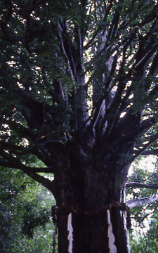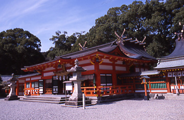 熊野権現速玉大社は熊野川の川口近くにあり、神門をくぐると朱色の熊野造りと流れ造りの社三棟が楠や杉の茂る神域に建ち、明るく開放感のある神社である。