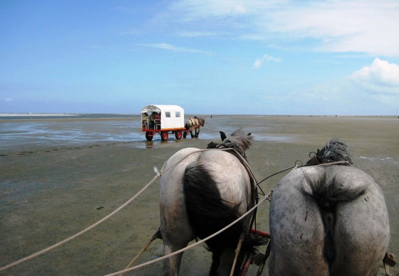 二頭の馬に引かせる観光馬車