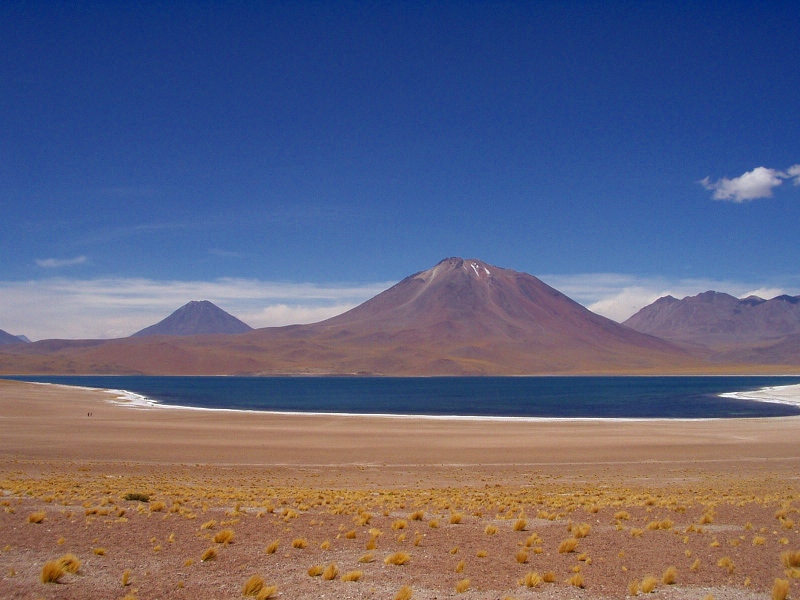 2、アタカマ砂漠・塩湖を経て訪れるミスカンティ山(5,622m)麓の4,000m越える高地にある、魚も鳥も住まない清らかな水を湛えるミスカンティ湖は静寂で神秘的な湖です。