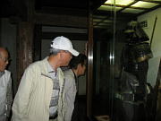 靴を脱ぎ、ほの暗い城内を、鉄砲狭間や弓狭間等を見ながら、手摺のついた急な階段を6階まで上がる。年配者にはチョットきついが、天守閣最上階からは、眼下に松本市街、まだ残雪を頂いた常念岳をはじめとする雄大な北アルプスの景観と新緑が眩しい周りの山々を望み、その眺望を満喫。