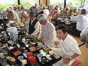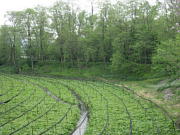 車窓より新緑の田園風景や、残雪のアルプスの雄大な姿を眺めつつ、安曇野に到着。ワイナリーで喉を潤した後、信州名物「蕎麦御膳」の昼食に舌鼓を打つ。道路端にひっそり立っている道祖神など、農村のひなびた雰囲気を味わいながら、広大な「大王ワサビ農場」に立ち寄った後、別名「烏城」とも呼ばれ、城全体が黒塗りの「国宝・松本城」へ。