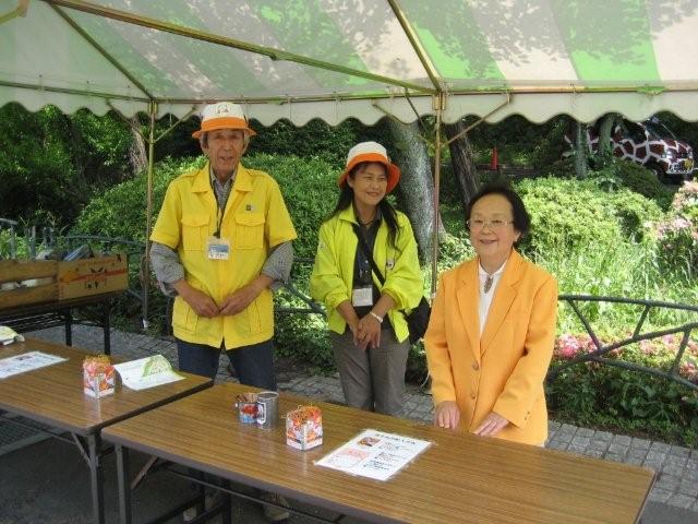ボランティア仲間と一緒に「いらっしゃいませ」(右端が私)