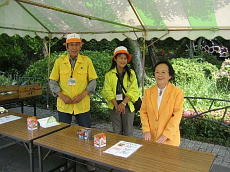 入口で迷子札を配るのもボランティアの仕事です。迷子札に子供の氏名を記入して子供に持たせます。中には、父親や母親にも迷子札を付ける様にせがむ子供がいます。微笑ましい光景です。