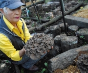 年季を積み上げ精進された成果でしょうか、最も難しいといわれる「黒舞茸」が見事に発生していました。大きいのを採取すると、その重量感・香りを 手のひら一杯に感じる事が出来ます。