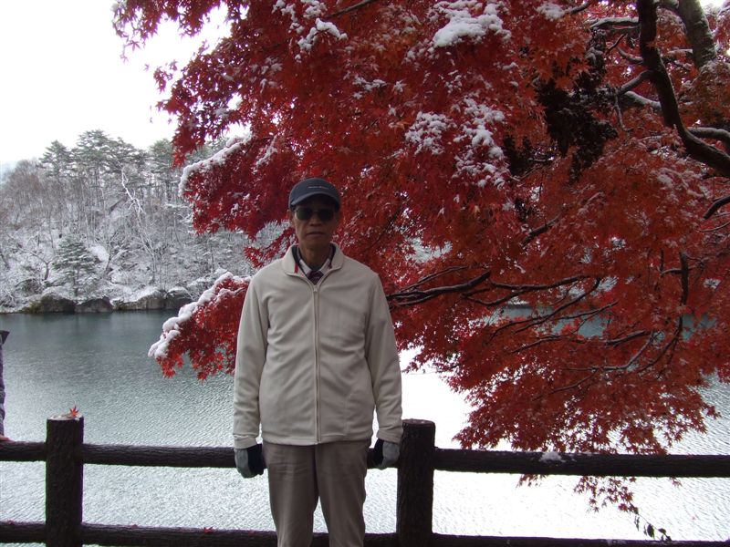 初雪の積もった五色沼の紅葉
