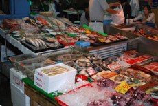 この青空市場は関西空港に近い泉佐野漁港にあり、漁港から水揚げされたシャコエビ・ワタリガニ・アナゴ・タコ・カレイなど新鮮な魚介類がスーパーマーケットよりも安価に買える。