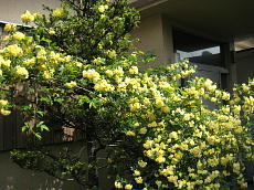木香(もっこう)薔薇(学名Rosa Banksiae)は、中国原産で4月から5月にかけて咲く。この花は某宮家の内親王のお印とか。