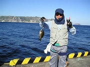翌日M氏の竿に35㎝のメジナがかかった。 これぞウミネコの恩返しか?