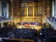 卒業式行事は3日前の交響楽団演奏会から始まり、前々日に学内徒歩ツアー、ハークネスタワーのカリヨン演奏、総長宅レセプション(私もご夫妻と握手しました)とグリークラブ演奏会など、前日に卒業生祈祷式(総長訓示)とクラスデイ(祝賀会と表彰)後、種々のコンサートやダンスパーティがあります。
