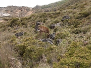 二日目は霧島山の最高峰韓国岳(1,700m)に登った。登山道の所々にミヤマキリシマが咲いていたが、五合目より上はまだ蕾状態だった。山頂はガスっていて展望は良くなかったが、下山時の登山道でシカに遭遇した(写真‐2)。
