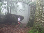 四日目は市房山に登る予定だったが、前日の雨で登山道が滑り易く、またガスも出て視界が悪かったので(写真‐4)、四合目の市房神社まで登りそこから引き返した。