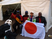 ①試合の日、ロッジ風ホテルに宿泊していたでガーナー(既にこの時点で1次リーグ突破)のサポーターの激励を受けている日の丸です。