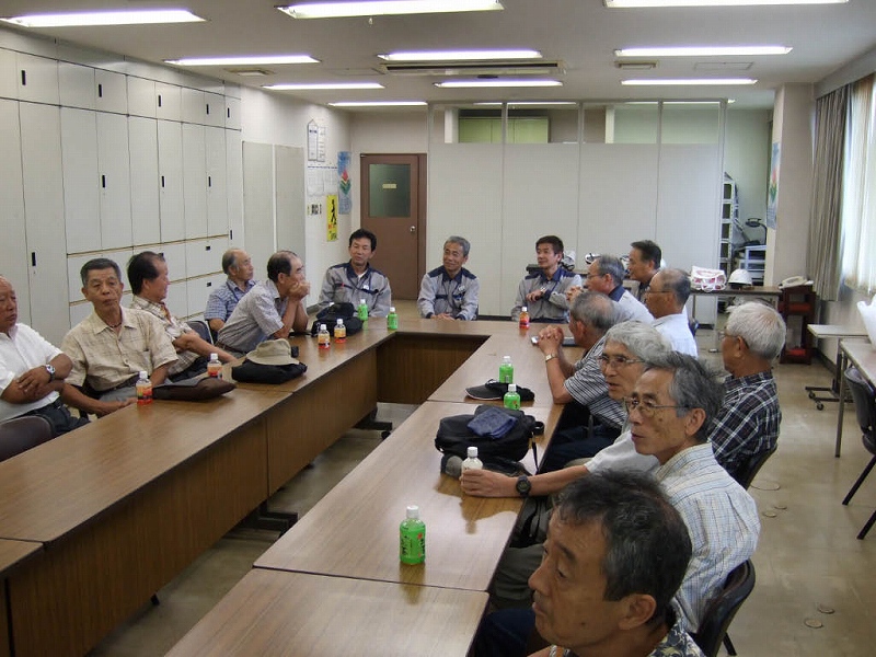 工場の現状(装置や設備の運転状況、本事務所の状況など)説明があり、その後現役組との懇談に花が咲きました。