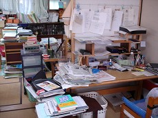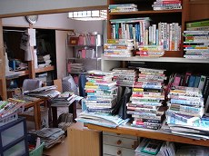 どういう環境で、こうした書きものをしているか、恥ずかしながら書斎の一部を紹介すると、離れの2室(10畳間2つ)に不要となったそれぞれ5つの机と椅子で5つのテーマごとに書いたり読んだりする場所がある。そのほかにも、母屋には3カ所の居場所があるので、気に行った場所で、気に入ったテーマで書くという建前になっているが、実はゴチャゴチャ同然。でも図書館など整理整頓された静かな場所では不思議と筆が進まないのである。私は、ゴチャゴチャ書斎の方が落ち着くのである。