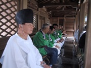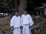 この日は、神宮神嘗祭遥拝式と言う神事の後、烏帽子装束に身を包んだ氏子や手伝い衆が3キロ離れた奥宮まで行列を整え練り歩くのです。私も昨年からお供え物を運ぶ唐櫃運びの一人として、二人ひと組で鯛などを入れたお櫃を担いで歩きました。