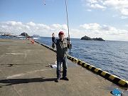 式根港桟橋へは昨日に続けて入場禁止、野伏港は北東の強風が吹き荒れ、釣りにならないので桟橋組は午前中待機し、午後から野伏港で風の影響が少ない場所で竿を出した。磯組は早朝から孫市磯で竿を出したが、午後から波が大きくなり隣の磯からの裏波の飛沫をまともに浴びるようになったので15:00頃納竿した。桟橋組も釣果が芳しくなかったので16:00納竿した。
