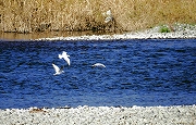 ミコアイサがいる橋まではいけなかったが眼下に相模川を一望できる所に出る。水際に5,6羽セグロカモメが見える。その先遠く大山がそして右の方にかすかに丹沢山が見える。初めてこの公園に来たが広々していて気持ちがいい、12/12日日曜日だったので子供連れの家族も多くボール遊びをしたり凧を揚げたりして楽しそうに遊んでいた。公園の管理もゆきとどいて清潔感のする公園であった。