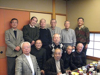 参加者はメンバーの他に、ゴルフコンペの時は常連のゲストとして参加している、猪浦、遠藤、坂田さんの3名と、体調の関係でゴルフは現役を引退しましたが、宴席はまだまだ元気な雨宮明生(77歳)さんの参加を得て、総勢12名の宴会でした。