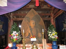 石造地蔵菩薩坐像は、堂内の内陣一杯に安置されている高さ3.17米の巨大な泉州砂岩で造られた石仏である。この石仏は元亨3年(鎌倉後期)奈良 東大寺の復興時に活躍した石大工薩摩権守行経の作で、その卓越した技量は精微で、お顔の表情はおだやかですばらしい。