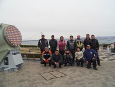 阪神高速4号、5号湾岸線→3号神戸線を乗り継ぎ→第二神明道路・垂水JCTから神戸淡路鳴門自動車道へ。8時30分「淡路SA」へ到着、明石海峡大橋の見晴らし台で記念撮影。
