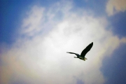 コサメビタキが来ているとバーダーが集まっていた。少ししてコサメビタキが前方の木に止まる。双眼鏡で確認カメラに収める。帰りも鴨川放水路をくるとオオヨシキリの騒がしい声がしてカメラを向けている夫婦がいた。仲間に入れてもらい双眼鏡で捉えカメラに収める。昨年いた所に今年もバンが出た。そして前方から不意にアオサギが飛び立ち東方の空に向かって飛んでいった。