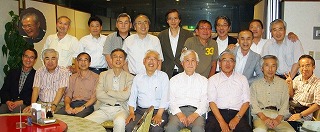 集合時間のかなり前に、多くのメンバーが懐かしいパレスサイドへ到着、ビル内外を散策していた模様で、10分前にはほぼ全員が集合、予定時刻の16時に、無事開会。ビール、紹興酒、焼酎そして赤坂飯店の中華料理で笑顔があふれる集いとなった。