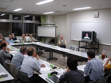 初回には、50代から70代の約30名の男女が参加して、2時間の講義と議論があっという間に終了した。はじめに全員に自己紹介をしてもらうことで、参加者相互の人物像を理解させ、議論を深めようとする意図はさすが。