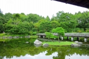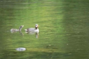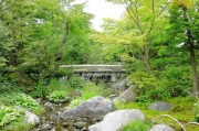 日本庭園は一番奥にありかなりあるき‐でがある。だが、管理が行き届いて素晴らしい庭園である。門を入ると美しい小川があり、その先に抹茶がいただける歓楓亭がある。早速入る。桔梗という和菓子と抹茶を一服いただくと疲れた体に力が湧いてきた。池の方に行くとカイツブリの親子が長い波紋を残して滑走し、不意に潜ったりしていた。