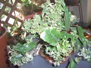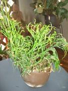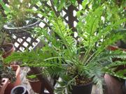私は30年以上、変化葉シダを蒐集しておりますが、縁の無い方には、摩訶不思議な世界と思われますのでその一端をご紹介したいと思います。変化葉を“芸”と謂い、芸が固定化(数世代続いて発現すること)されたものには典雅な呼称が付けられています。写真A1、A2はノキシノブの芸で、A1は「平獅子」、A2は「雲竜」、Bはヒトツバの芸で「南京獅子」、Cはマツバランの芸の「鳳凰柳」、Dは「獅子マメヅタ」で1977年に南紀で発見されたもの。Eは「オニヒノキシダ」。ヒノキシダとオオタニワタリの自然交雑種で1960年に屋久島で発見されたものです。シダはジメジメしたところを好むと思われがちですが、多くの種類では高い空中湿度を好む反面、特に着生シダは根の過湿を嫌います。