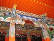 祭神は応神天皇(おうじんてんのう)、伝承によれば古事記、日本書紀の時代であるが、仲哀天皇(ちゅうあいてんのう)の妃である神功皇后(じんぐうこうごう)が「朝鮮の新羅の国に進攻せよ」とのご神託を受け、妊娠中ではあったが武内宿禰(たけしうちのすくね)らを従え、軍船を整えて海を渡り新羅に進攻 して服従させた。そして帰国した後九州で応神天皇を出産されたという。