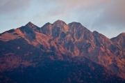 本来は朝陽に照らされる雪の穂高連山のはずでしたが、荒々しい岩肌の山々です。